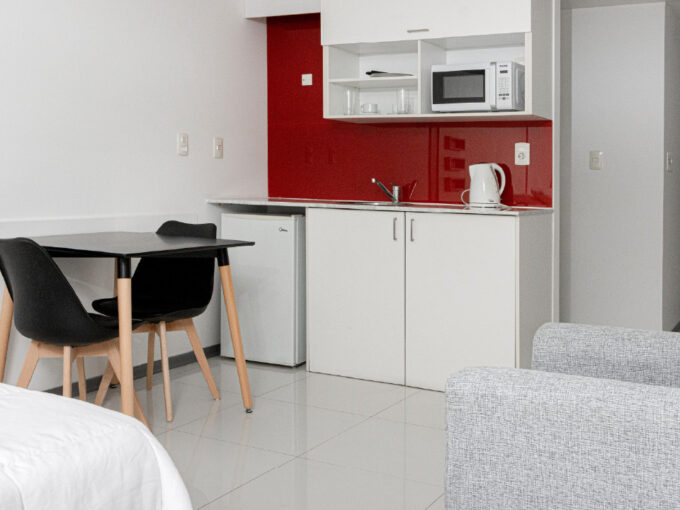 Zona Común: WiFi – Conexión gratuita y rápida. Aire acondicionado – Frío/Calor ajustable. Habitación para no fumadores – Espacios libres de humo. Ventanal – Gran entrada de luz natural. Zona de Dormitorio: Sábanas – Ropa de cama suave y cómoda. Armario – Espacio amplio para colgar ropa. Caja fuerte – Para guardar objetos valiosos. Sofá – Espacio cómodo para relajarse. Zona de Baño: Secador de pelo – Para tu comodidad. Artículos de tocador – Jabón, champú y gel de baño. Toallas – Toallas de baño y manos. Shampoo y Acondicionador – Kit de bienvenida para tu confort. Zona de Cocina y Comedor: Cafetera – Para disfrutar de un café fresco. Cocina – Totalmente equipada con utensilios. Heladera – Espaciosa para mantener tus alimentos frescos. Horno convector – Ideal para preparar comidas. (Sólo en los 2amb superiores y Deluxe) Platos, cubiertos y vasos – Completo juego para tus comidas. Zona Exterior: Balcón – Con vistas a la ciudad. Espacio exclusivo para relajarse al aire libre.