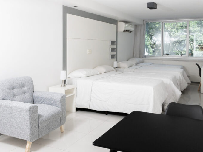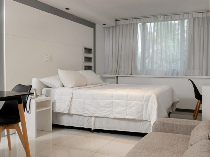 El Apartamento Superior de Babel Arcos combina calidez y estilo en cada uno de sus 38 m². Su ambiente integrado, pensado para dos personas, destaca por un equilibrio perfecto entre funcionalidad y diseño. La luz natural atraviesa sus ventanales y acompaña un interior donde el protagonista es un hermoso sillón, ideal para disfrutar de momentos de relax o lectura. Un balcón privado y una distribución cuidada completan este espacio único, ideal para quienes buscan vivir Palermo con comodidad y distinción.