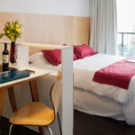 Este moderno monoambiente ofrece un espacio funcional y elegante, ideal para viajeros solos o parejas que buscan confort en Nueva Córdoba. Su diseño compacto maximiza cada rincón, con amplios ventanales que inundan el ambiente de luz natural. La cocina totalmente equipada permite preparar comidas con facilidad, mientras que la zona de descanso, con cama confortable y mobiliario de calidad, asegura un descanso placentero. El área de estar invita a relajarse, ya sea disfrutando de una película o contemplando las vistas urbanas. La climatización ajustable y la conexión Wi-Fi de alta velocidad garantizan una estancia confortable en cualquier época del año. Ubicado en una zona privilegiada, permite acceso inmediato a universidades, bares, restaurantes y espacios culturales, convirtiéndolo en la opción perfecta para estancias cortas o prolongadas en la ciudad.