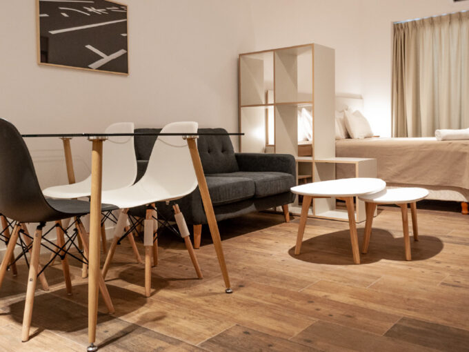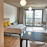 Este Studio PB-A es un monoambiente amplio y moderno, con un diseño minimalista que destaca por sus grandes ventanales en las paredes laterales, que inundan el espacio de luz natural. Su estilo «obra gris» a la vista, combinado con detalles de alta calidad, le da un toque único y contemporáneo. Perfecto para quienes buscan un espacio práctico y elegante, este estudio ofrece todo lo necesario para una estancia cómoda y funcional.